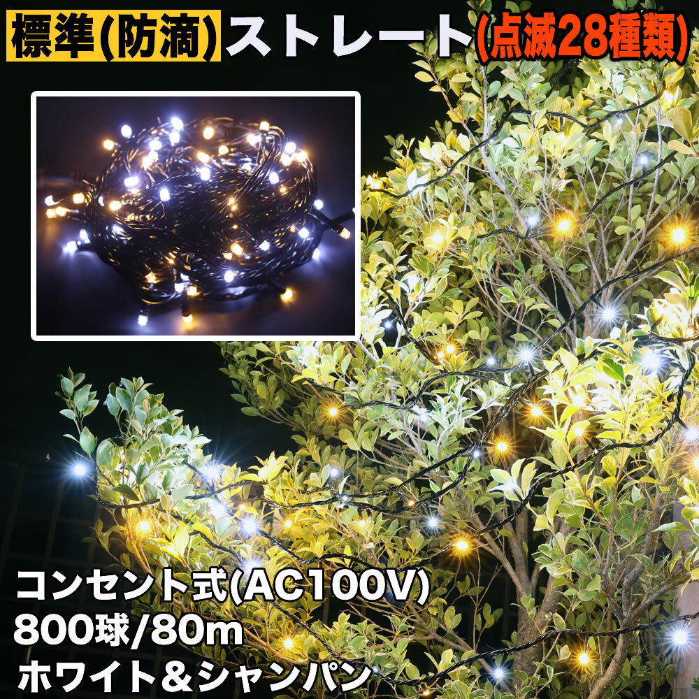 > クリスマス 防滴 イルミネーション ストレート ライト 電飾 LED 800球 80m 2色 白 ・ シャンパン 28種点滅 Bコントローラセット