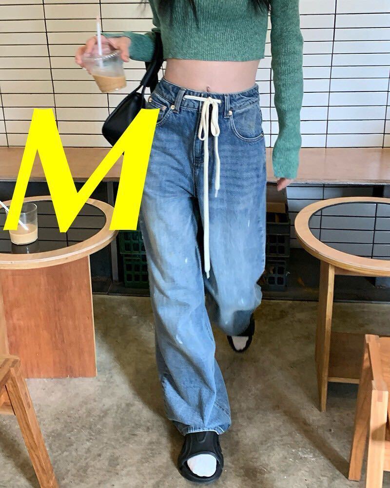 > デニム ワイドレッグ ジーンズ ワイドパンツ ルーズパンツ フレアパンツ ボトムス パンツ インディゴ トレンド 好評 ストリート 青 M