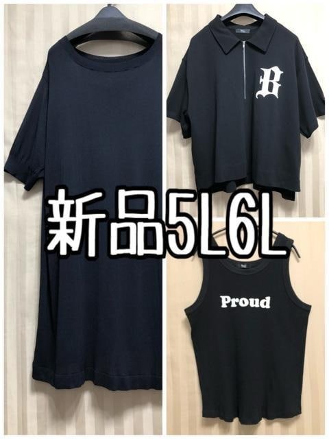 - 新品☆5L6L♪ロゴデザインおしゃれトップス2枚&すけ感チュニックワンピ☆x587