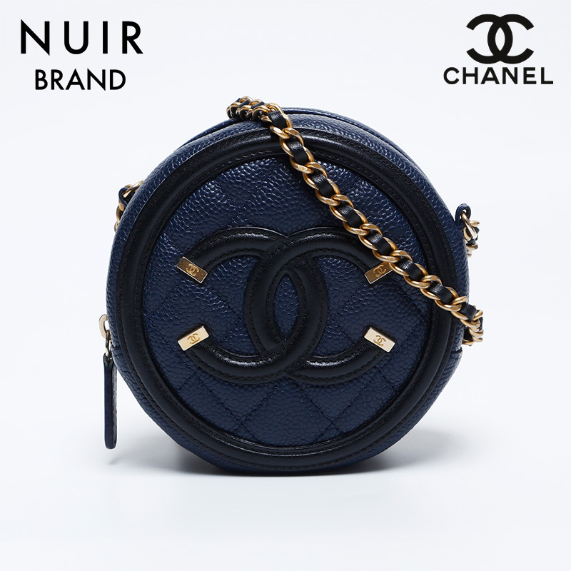 > シャネル CHANEL ショルダーバッグ 26番台 キャビアスキン フィリグリー ミニ ネイビー
