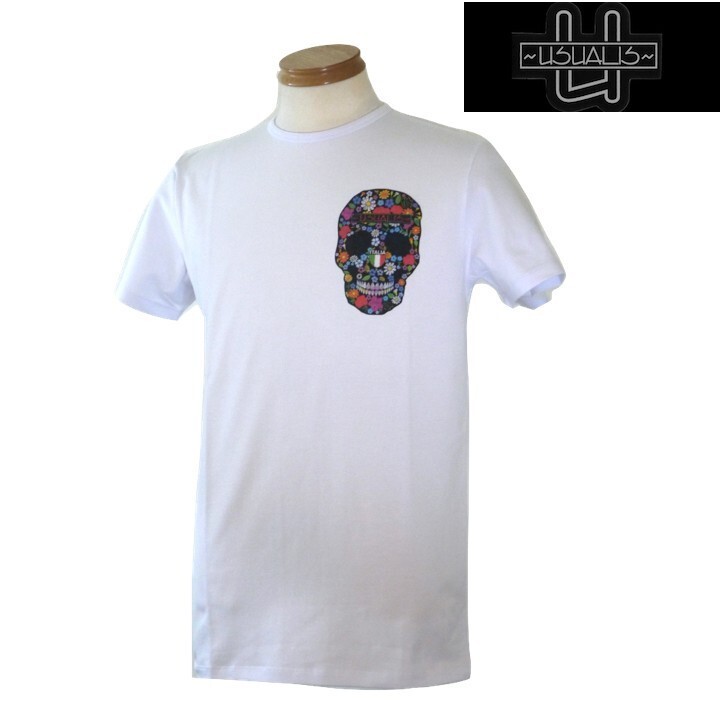 > 【春夏SALE】ウザリス/USUALIS 夏物 プリント半袖Tシャツ XL/2Lサイズ 522-白系