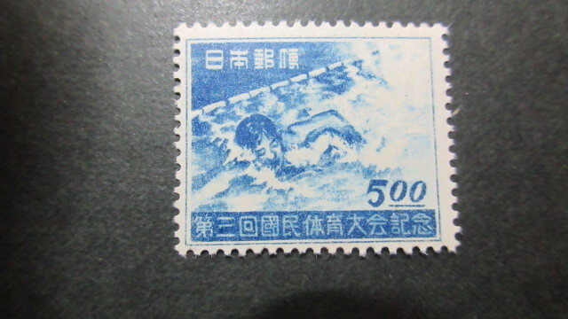 - 【記念切手】記128 第3回国民体育大会記念(水泳) (1種完)