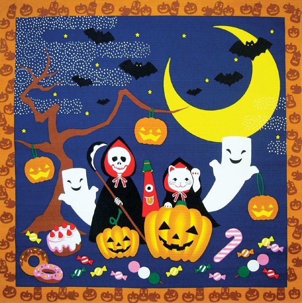 - 小風呂敷 10月(ハロウィン) 綿シャンタン(四季彩布 季節柄)日本製 前田染工 13868