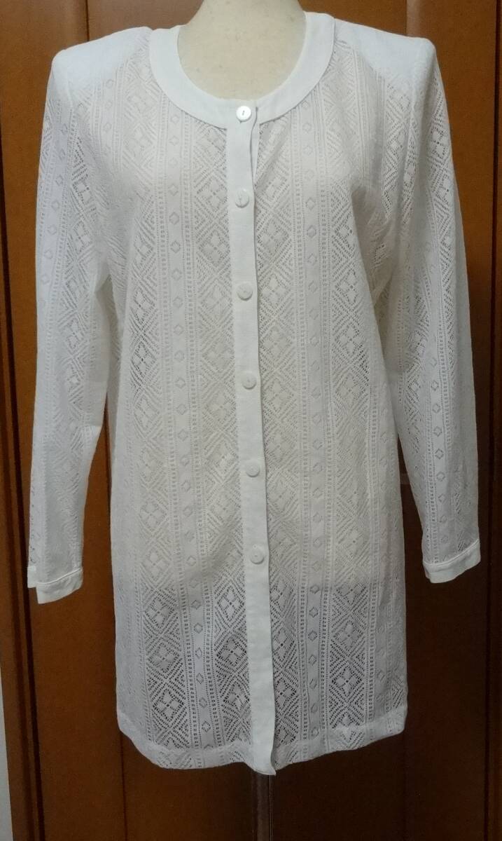 > RUBAN ROUGE★レースジャケット★白★WHITE★美品★USED★レディース★11号★大きめ★ノーカラージャケット★冷房対策