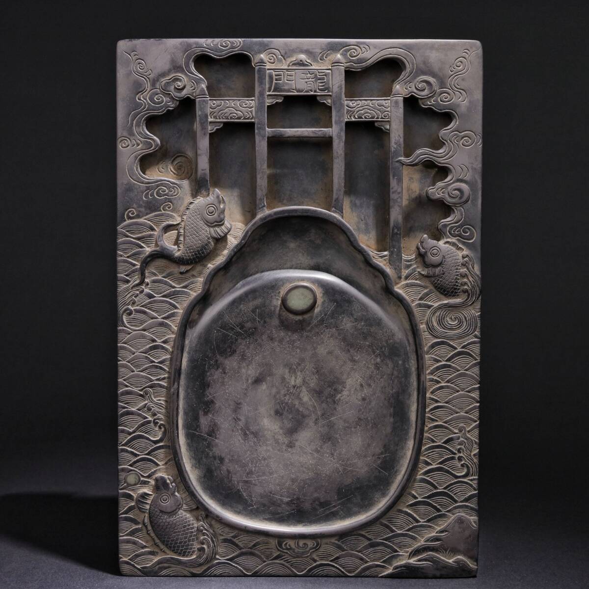 - 中国・清代 硯台 旧蔵【端硯 魚躍龍門 】古美術品 珍品旧蔵 書斎置件 硯台 時代物 LOT-92210