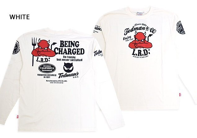 > BEING CHARGED(充電中)長袖Tシャツ◆TEDMAN/テッドマン ホワイトLサイズ(サイズ42)TDLS-364 エフ商会 ロングTシャツ efu