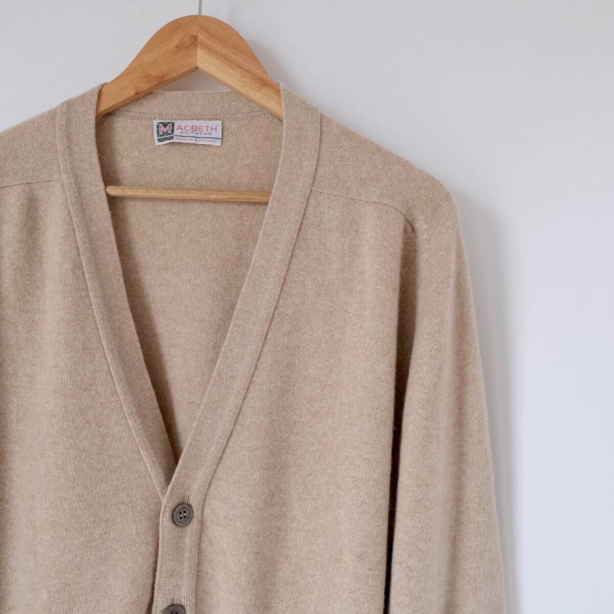 > デッドストック 80s【 MACBETH KNIT WEAR 】イギリス ビンテージ カシミヤ ニット カーディガン / ライトベージュ系 / 未使用 英国製