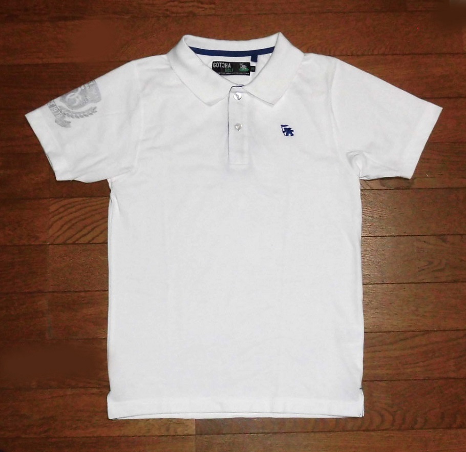 > GOTCHA GOLF ガッチャ ゴルフ ポロシャツ ゴルフシャツ 半袖 厚手 刺繍&プリント デザイン ピート正規品 襟裏ロゴ WHT XS USED 美品