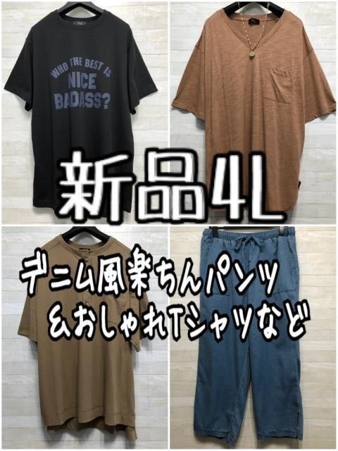 - 新品☆4L♪デニム風やわらか楽ちんパンツ&おしゃれTシャツなど3枚☆f223