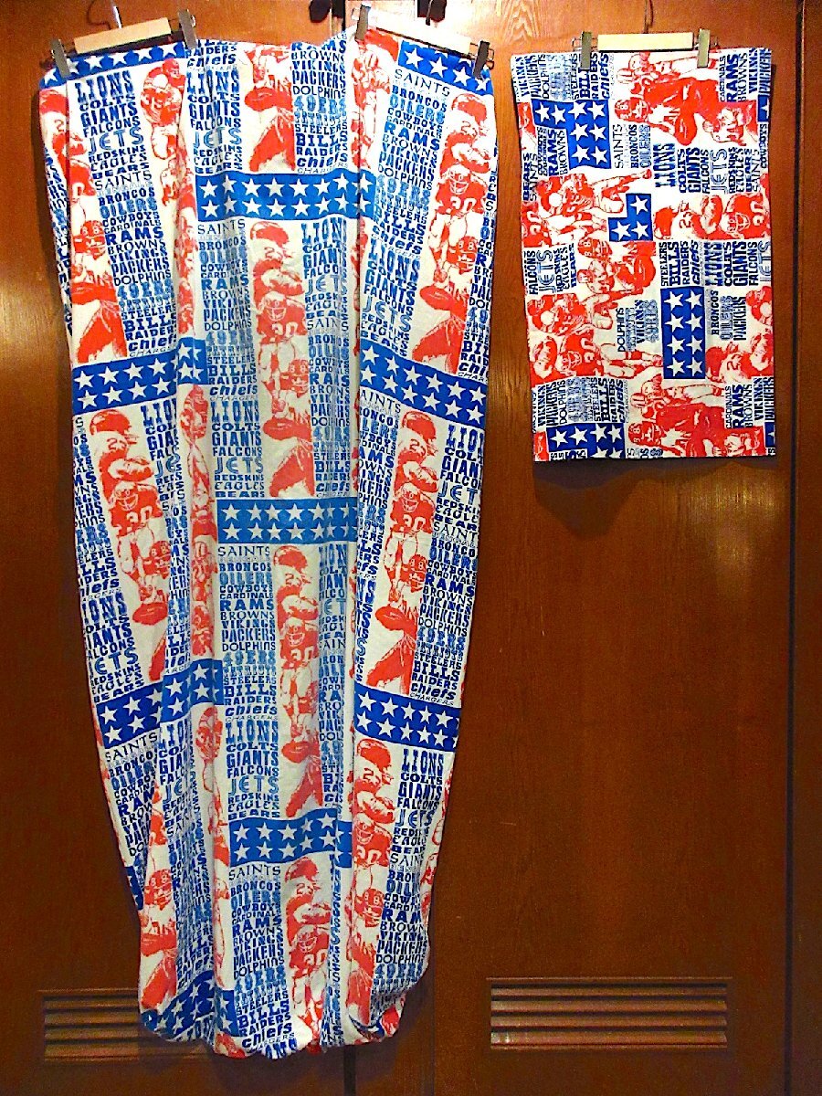 > ビンテージ70's●Bibb NFL 総柄枕カバー&ベッドシーツ●240922m4-fbrベッドカバーファブリックレトロインテリア雑貨