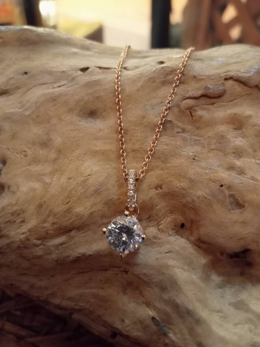 - シルバー925,ピンクゴールド,コーティング,パヴェ,ペンダント,ネックレス,ジルコニア,レディース,チェーン付き