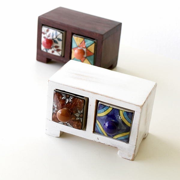 - 小物入れ 卓上 木製 アンティーク おしゃれ アクセサリーケース 陶器の2引出しミニチェスト 【タイプA】 送料無料(一部地域除く) tom4258a