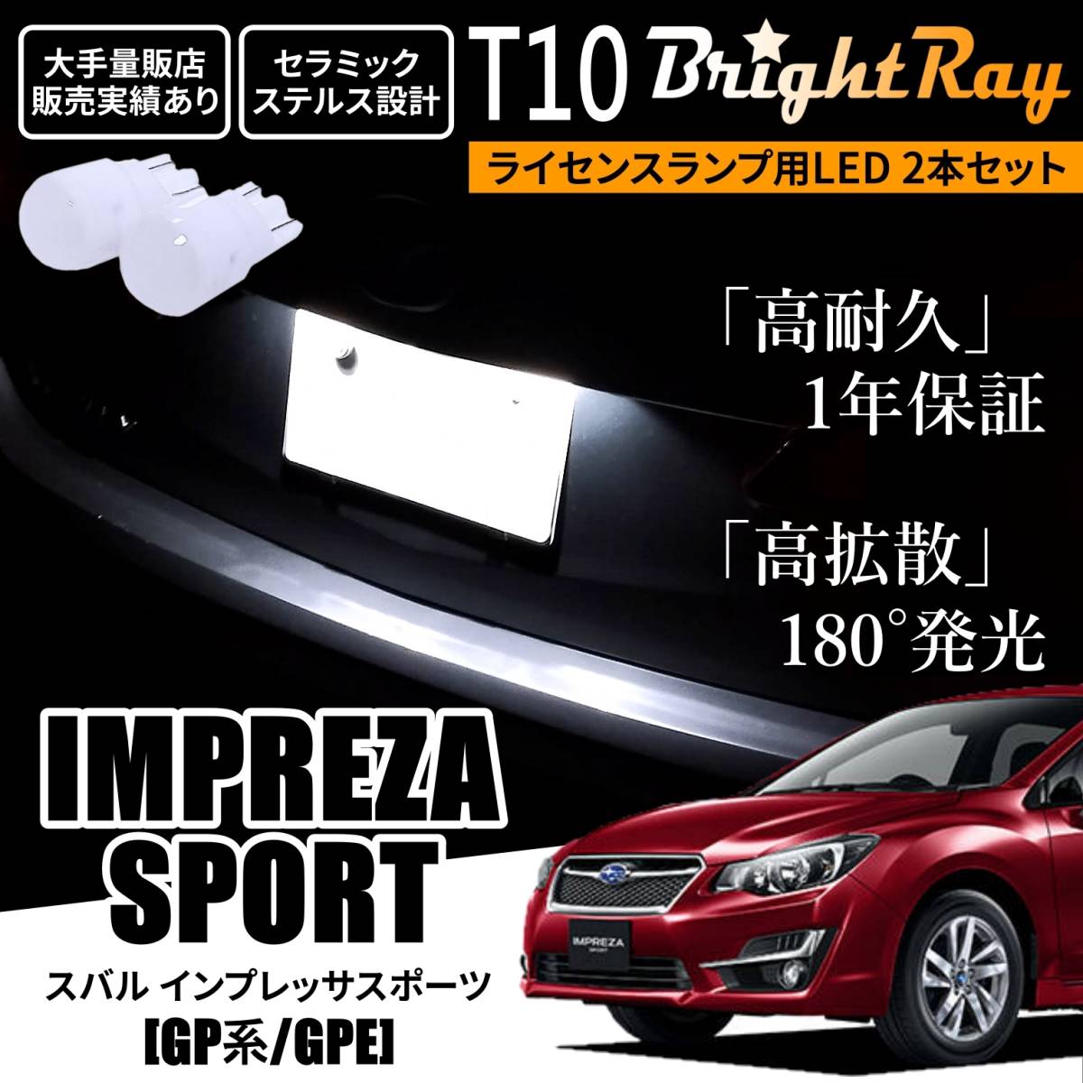 - 送料無料 スバル インプレッサスポーツ GP2 GP3 GP6 GP7 GPE GP系 BrightRay T10 LEDバルブ 1年保証 ナンバー灯 ライセンスランプ ホワイト