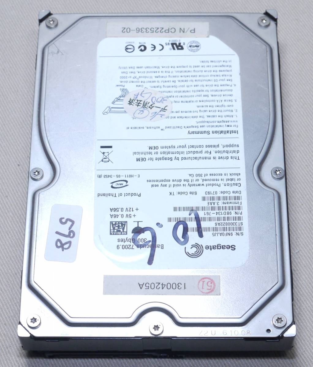 - SEAGATE ST3300822AS 300GB SATA エラーなし 598