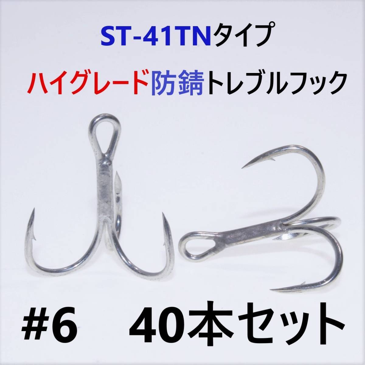 - 【送料150円】ST-41TNタイプ#6 40本セット 高品質ハイグレードトレブルフック トリプルフック ST-46好きに