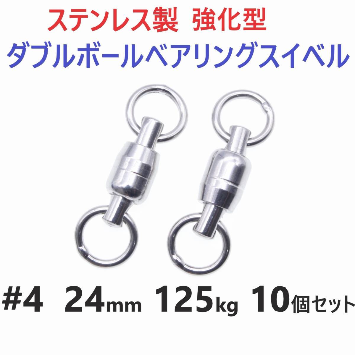 - 【送料150円】強化型 ステンレス製 ダブルボールベアリングスイベル #4 24㎜ 125㎏ 10個セット 溶接リング 両軸回転 ジギングに!