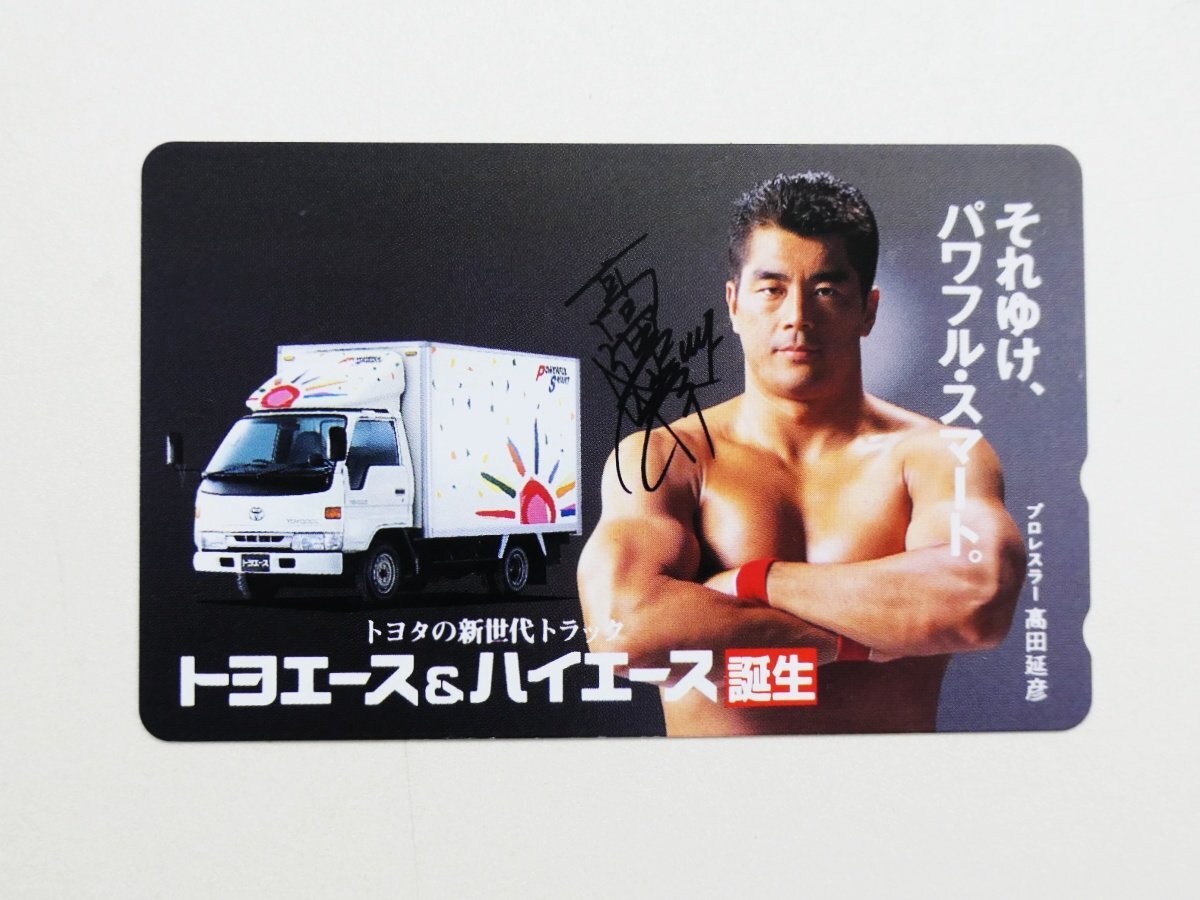 > 【396】 テレカ 高田延彦 サイン入り(印刷) プロレスラー トヨタ トヨエース&ハイエース トラック テレホンカード 50度
