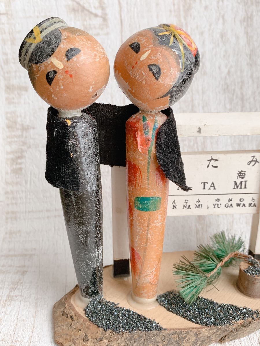 - こけし 民芸品 熱海 お土産 昭和レトロ 貫一お宮 レア 日本人形 当時物