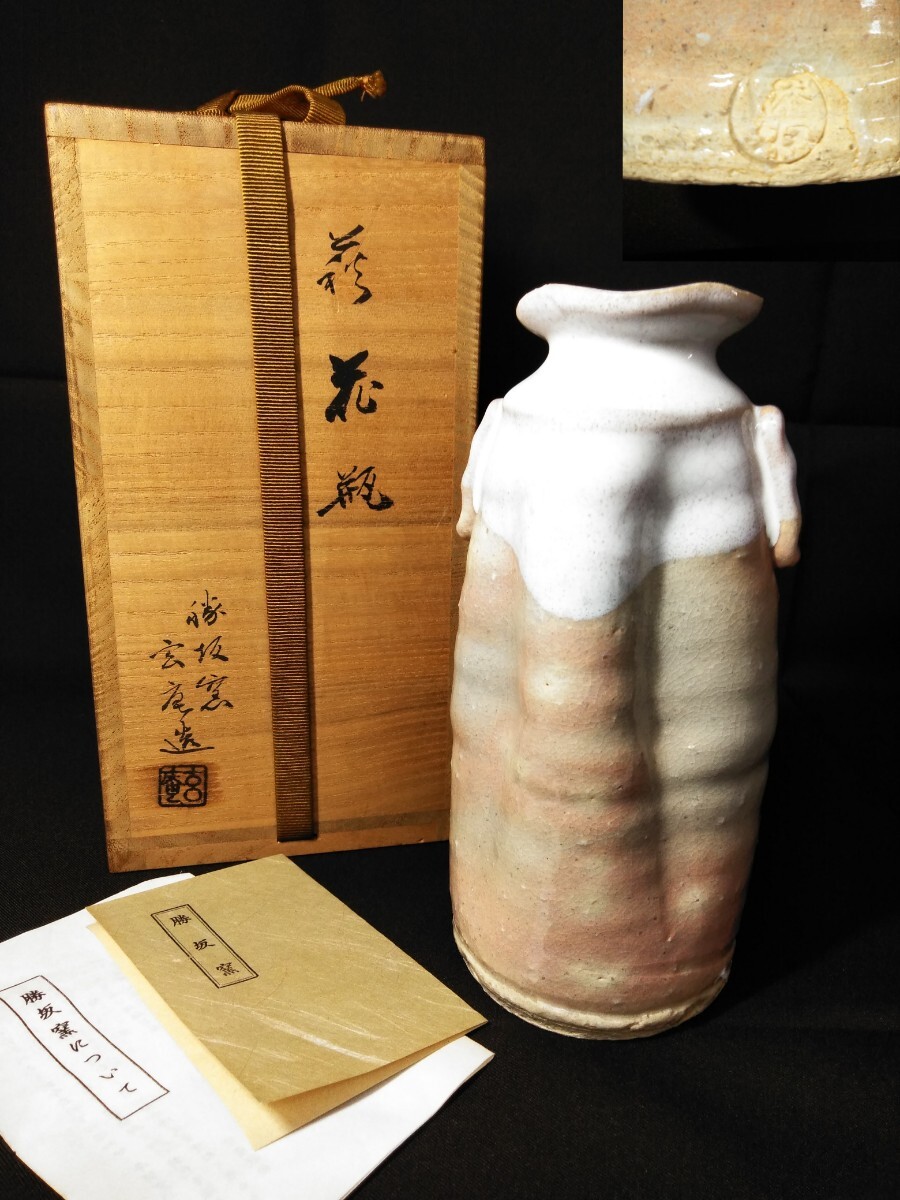 - 萩焼 脇本玄庵 勝坂窯 花器 花瓶 花入 華道具 共箱付 (検索) 生花 インテリア 骨董 古玩 古道具 懐石 会席 茶道 花壺 置物 陶器 在印