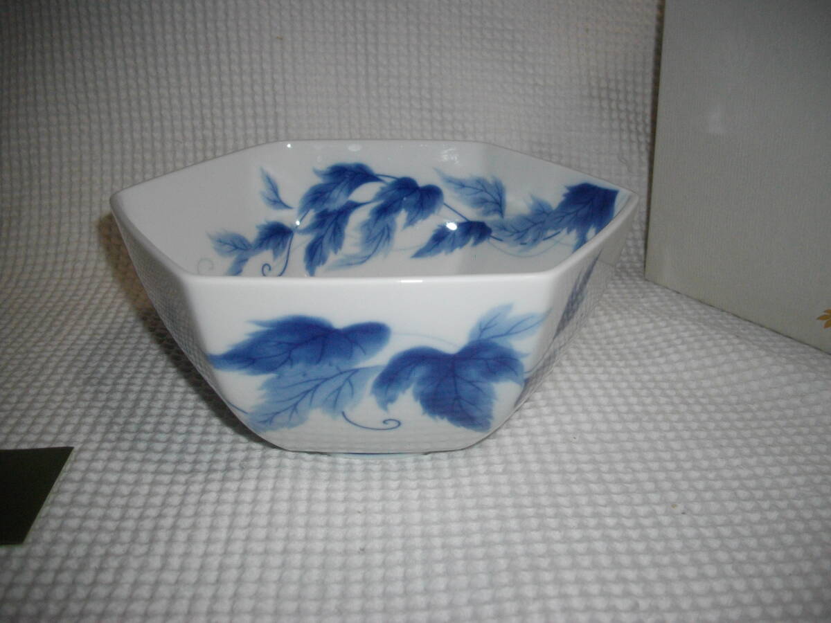 - 【香蘭社】 染付麻の葉 六角 菓子鉢 ◆ 深鉢