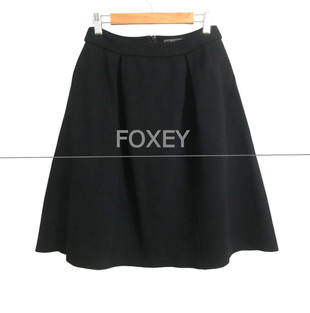 > 美品 FOXEY BOUTIQUE フォクシーブティック サイズ38 ストレッチ 膝丈 ミディ丈 タック ニット フレアスカート 黒 ブラック