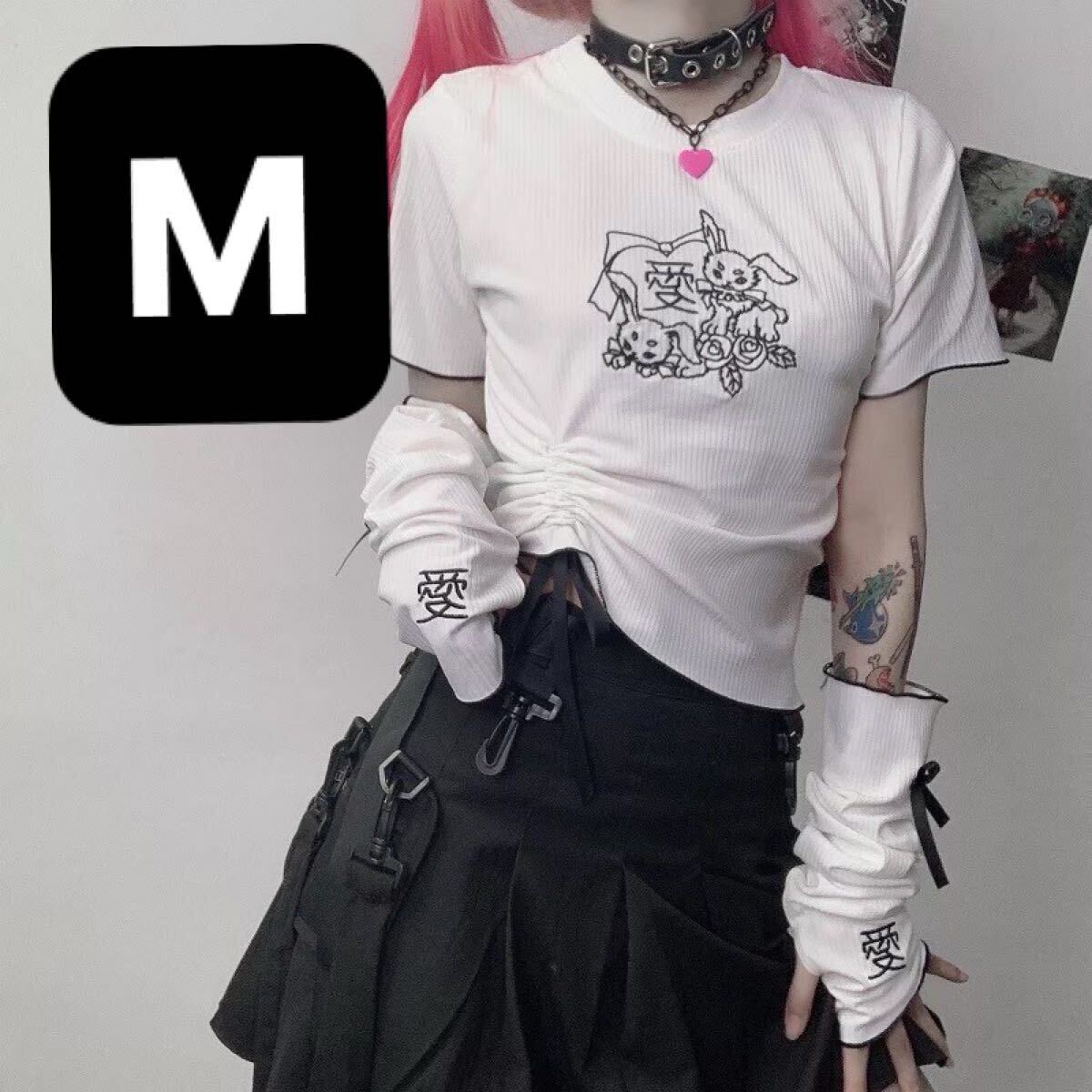 - Tシャツ ロングTシャツ トップス ロンT アームカバー トレンド ストリート レディース オルチャン 韓国 人気 うさぎ ラビット 白 M