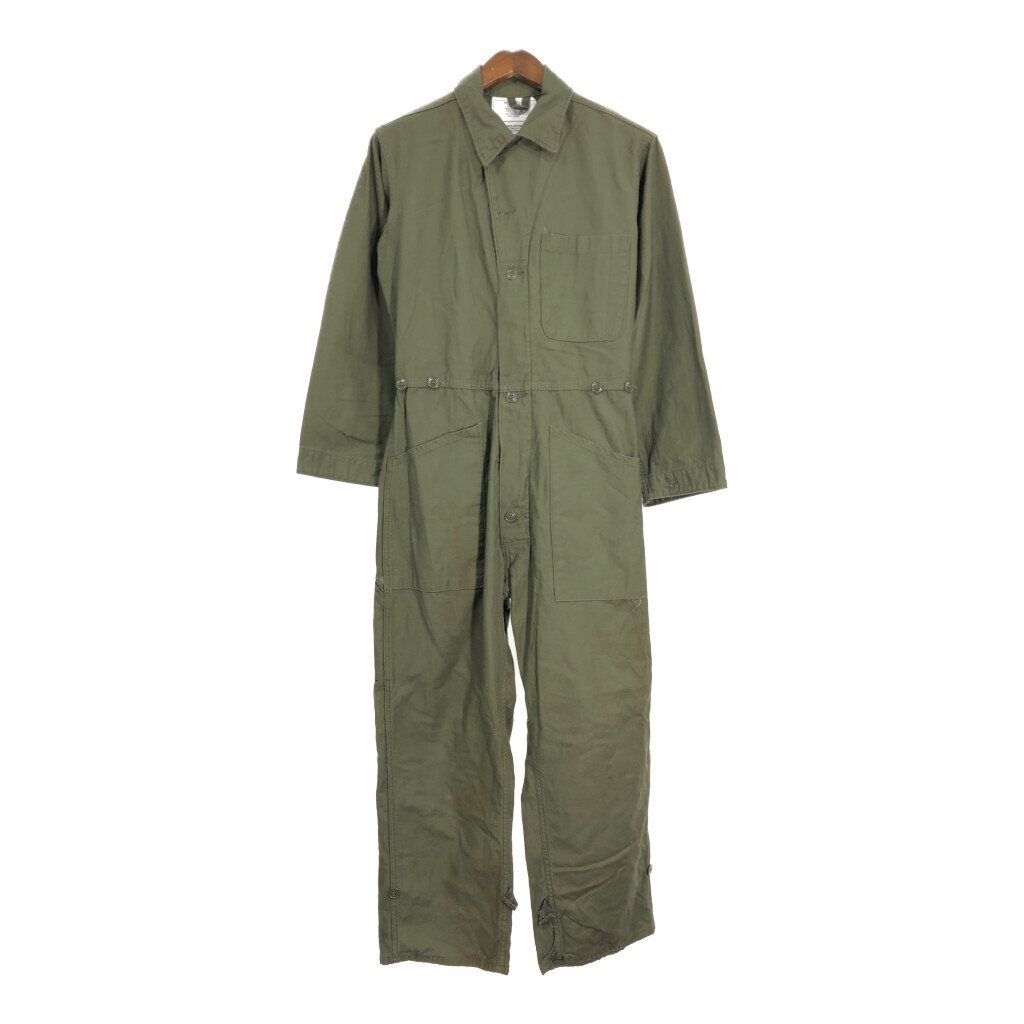 > 80年代 米軍実物 U.S.ARMY コットンサテン カバーオール TYPE1 オールインワン ミリタリー オリーブ (メンズ SMALL) 中古 古着 S2114