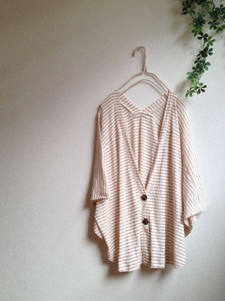 - ★UPTIGHT★重ね着に可愛いポンチョ風半袖カーディガン ボーダー