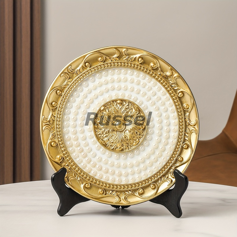 - ディスプレイプレート ラグジュアリー おしゃれ かわいい インテリア 飾り皿 アート 置物 オブジェ ディスク 彫刻 装飾 ゴールド