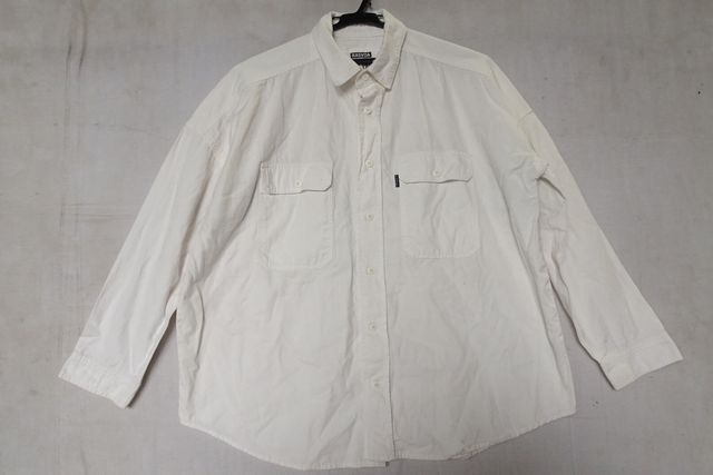 - RASVOA/ラスボア/長袖シャツ/しっかりめ生地/両胸フラップポケット/貼付プリント/オーバーサイズシルエット/白/ホワイト(10/4R)