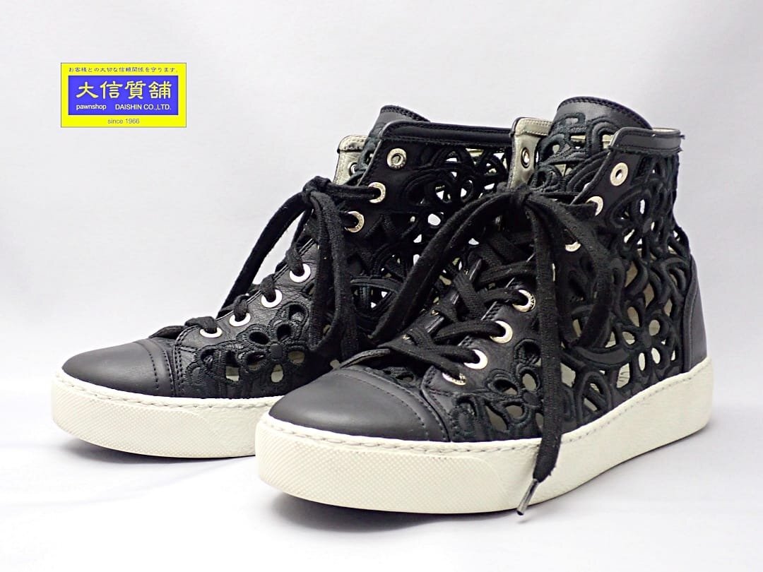 - CHANEL シャネル レディース スニーカー 37 ハイカット ブラックレース 中古B+ 【送料無料】 A-8616