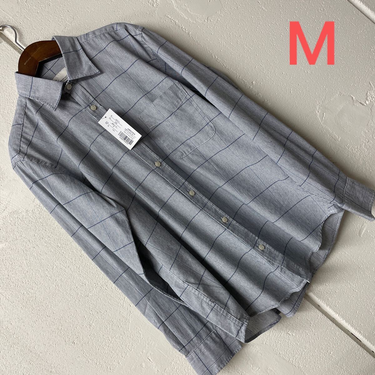 - Mサイズメンズ綿100%長袖シャツブラウス グレー縞柄
