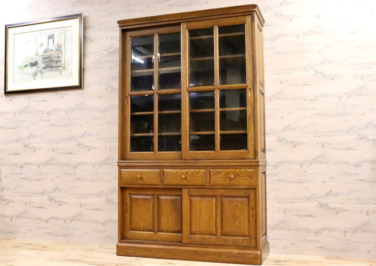 - GMHS337○勇峰工芸 ポエム 食器棚 カップボード キャビネット 飾り棚 ダイニングボード 楢材 カントリー レトロ 和モダン 旭川家具