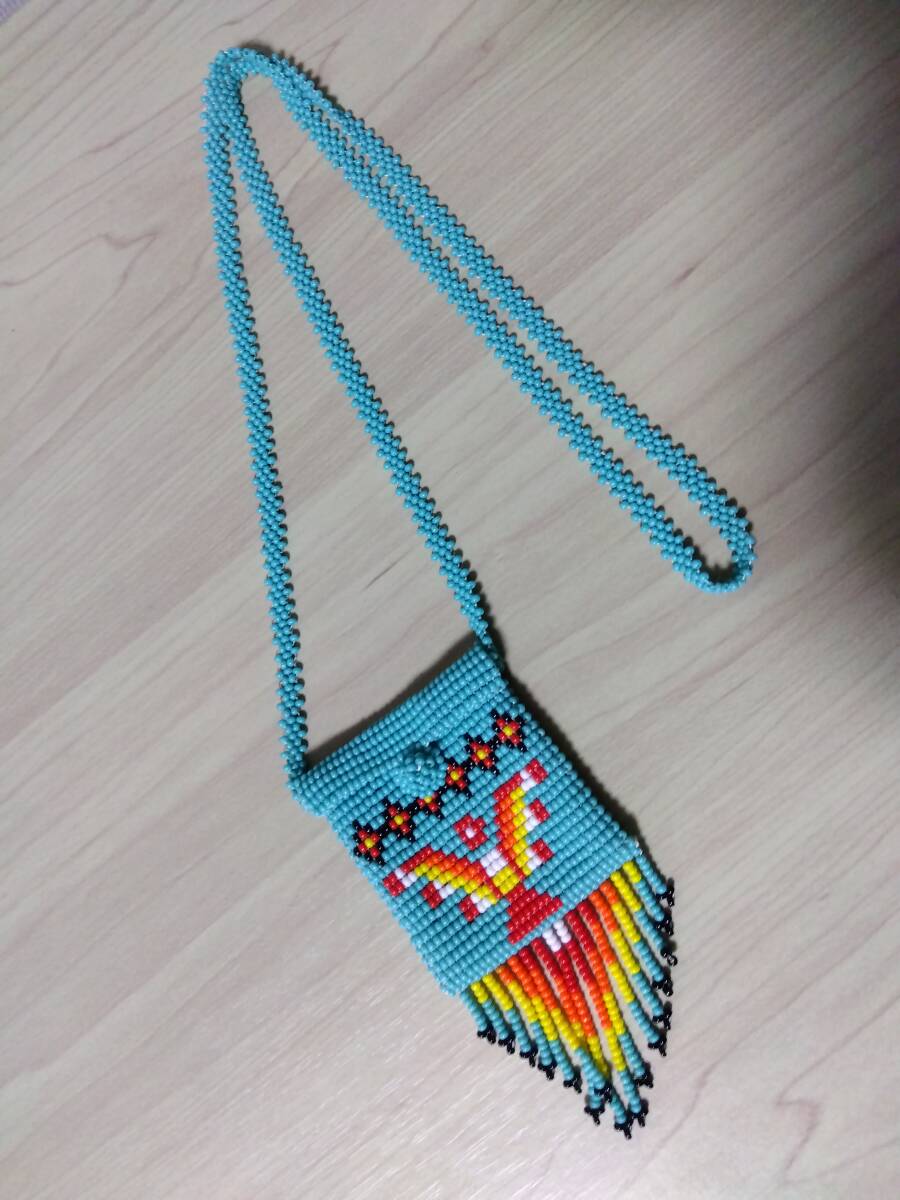 - 未使用品 即決\980 南米 グアテマラ マヤ ビーズ ポーチ ネックレス ハンドメイド コンドル