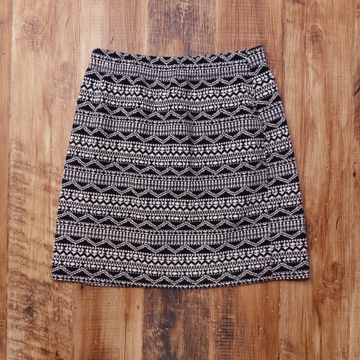 - 美品 ジャガードニットミニスカート レディース フェアアイル ボヘミアン フリーサイズ ブラック系×アイボリー系 幾何学柄 LA5
