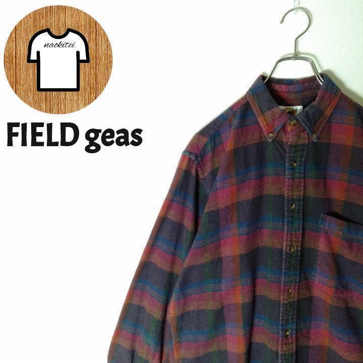 - FIELD geas ライトネルシャツ M 海外古着 ジャマイカ A533 チェック柄 ボタンダウン ダークカラー ダークトーン