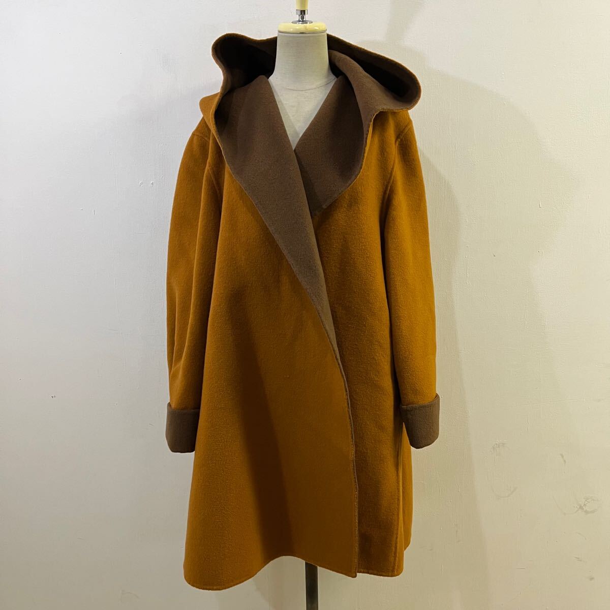 > VINTAGE Raffina 極上 カシミヤコート ロングコート フードコート 2トーン オーバーコート ブラウン ヴィンテージ【送料一律/同梱可能】M