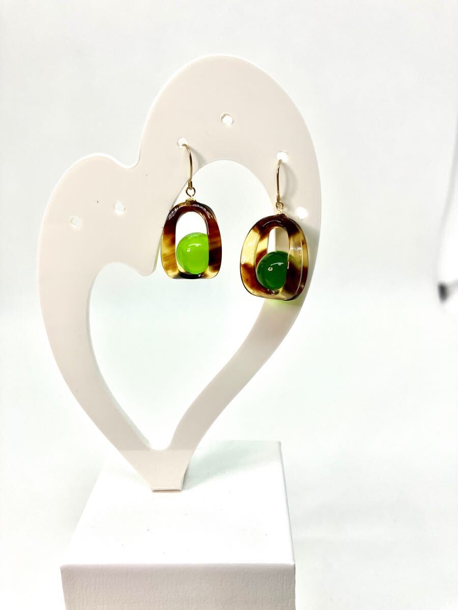 - 【新品】本べっ甲/グリーン琥珀玉かご入りデザインピアス*リトアニア産琥珀*揺れるデザイン*K18*本べっ甲*ばらふ*アメリカンフック