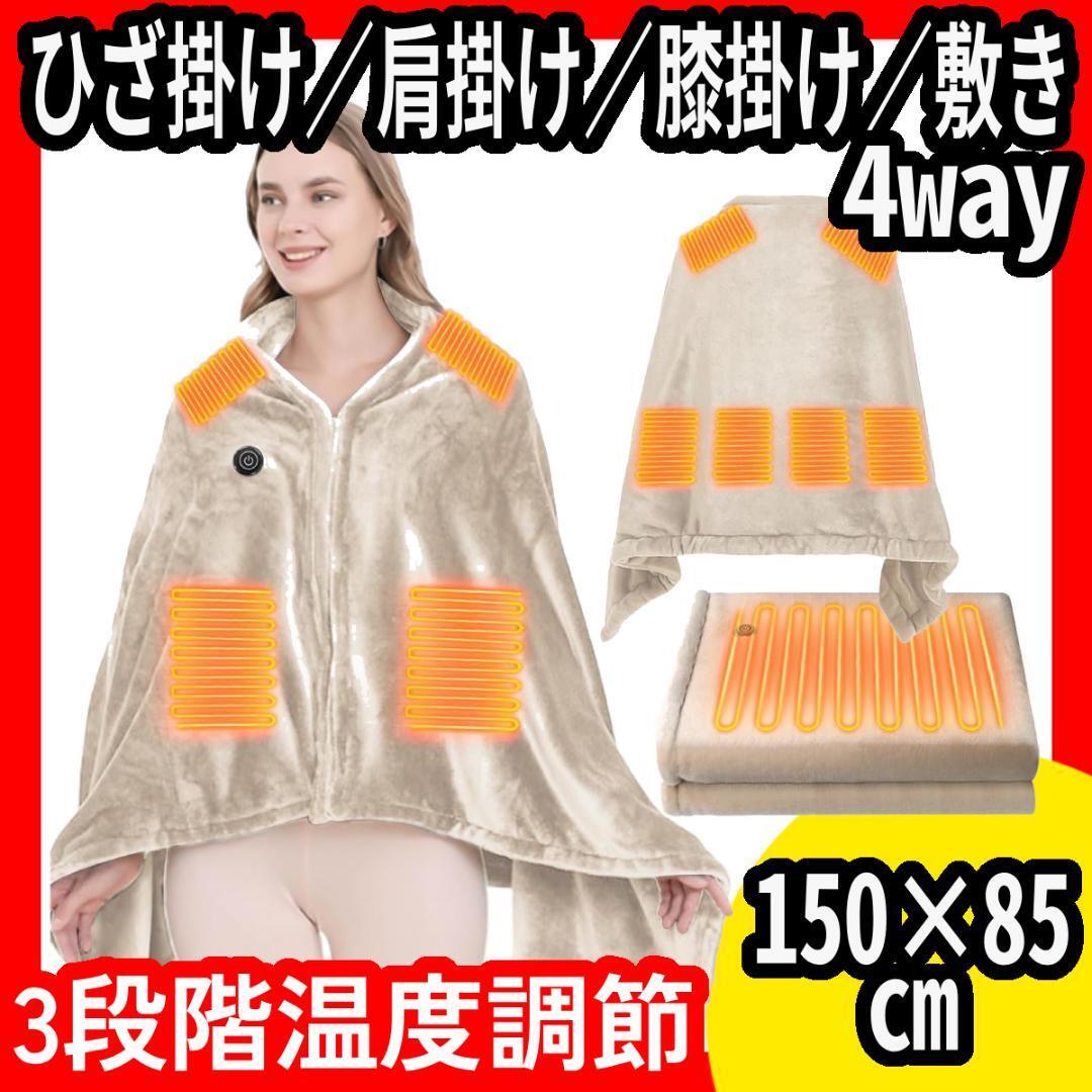 - 電気毛布 省エネ 節約 肌色 丸洗い 150×85cm ひざ掛け 敷き 掛け 着る ペット ベージュ カーキ USB 給電 3段階調温 寒さ対策 ヒーター