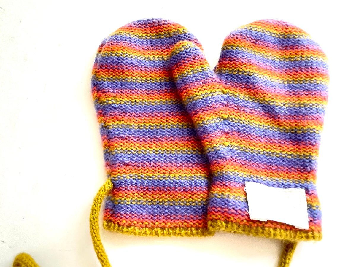 > ■ 美品 HERMES エルメス キッズ 手袋 カシミア100% ボーダー 紫 オレンジ こども用 マルチカラー 小物★