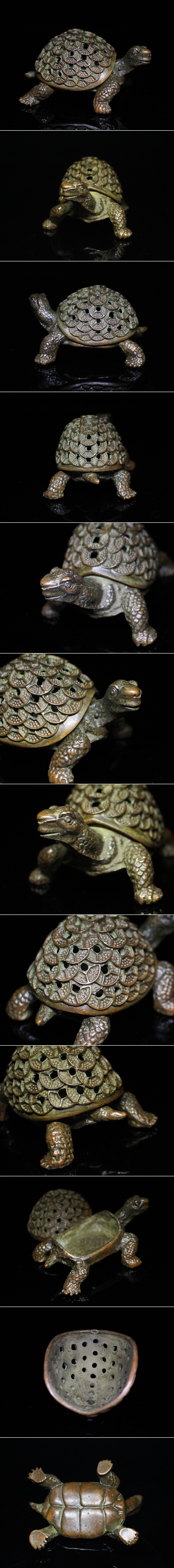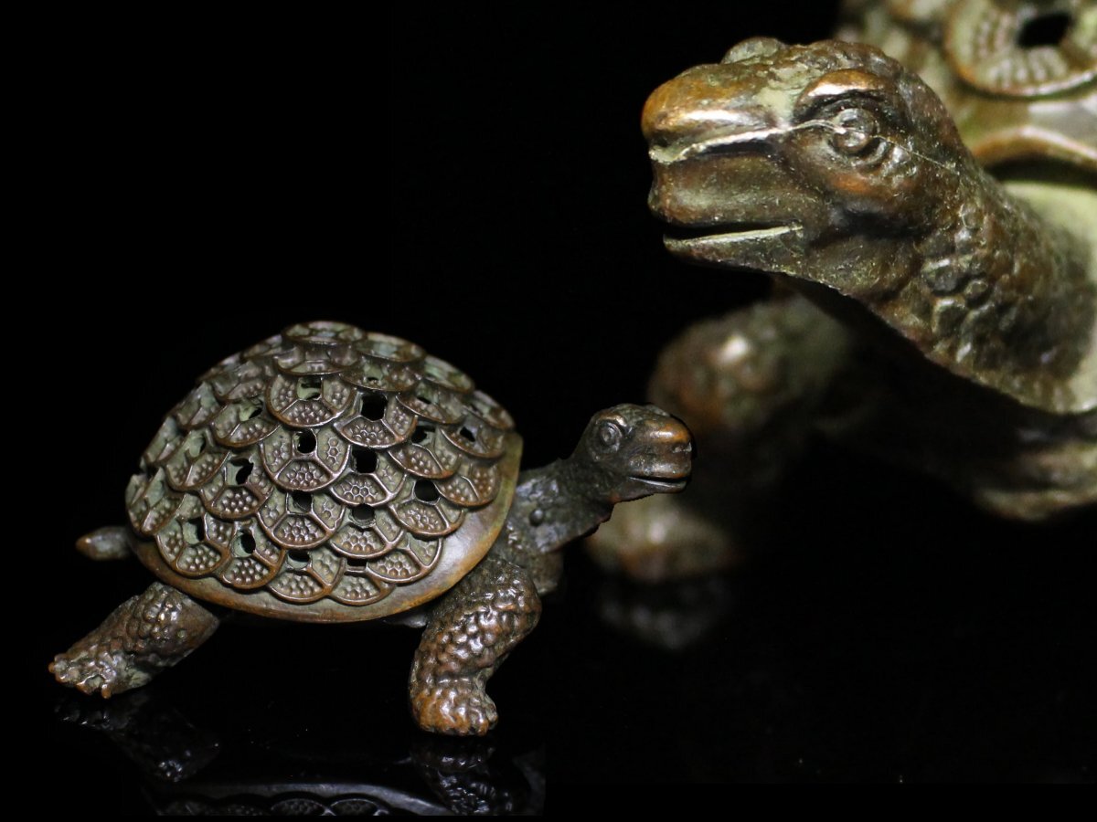 - ◆古銅・亀・かめ・香炉・置物・小物入・細密細工・煎茶飾り・盆景・香道具◆a4116h