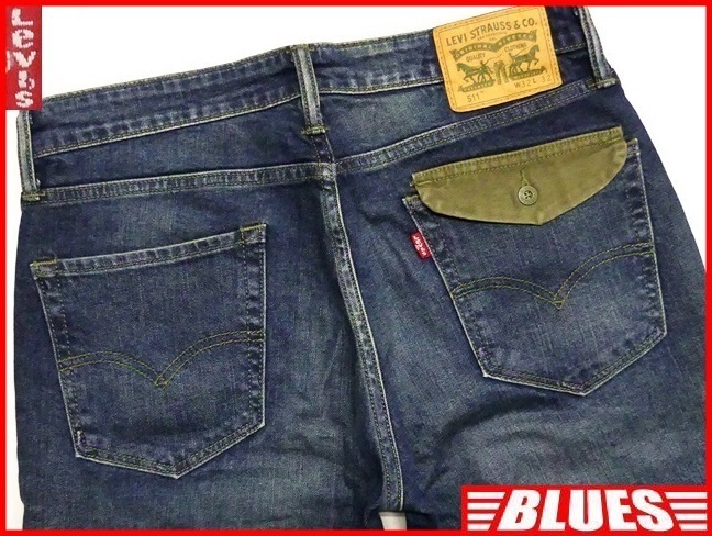 - 即決★リーバイス511★W32 スリムストレート ジーンズ LEVIS フラップポケット 緑ステッチ スキニー テーパード デニム ローライズ 縦落ち