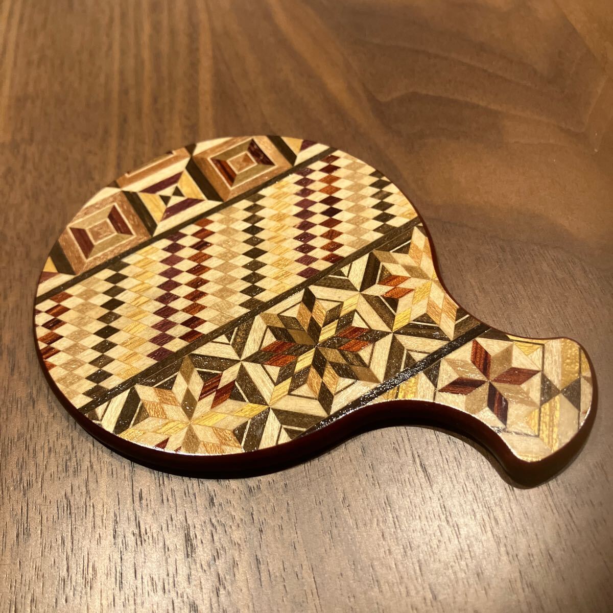 - 寄木 手鏡 鏡 ミラー 和風 日本文化 蚤の市 レトロ 可愛い 綺麗 寄木細工 木製品 インテリア コレクション