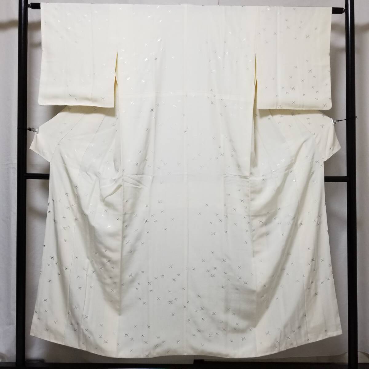 > 【桐徳】10%値下げ☆礼装用*下着地{正絹*白地*袷.下着地}*身丈152-裄62.5*白地に銀箔加工の飛鶴*№6859