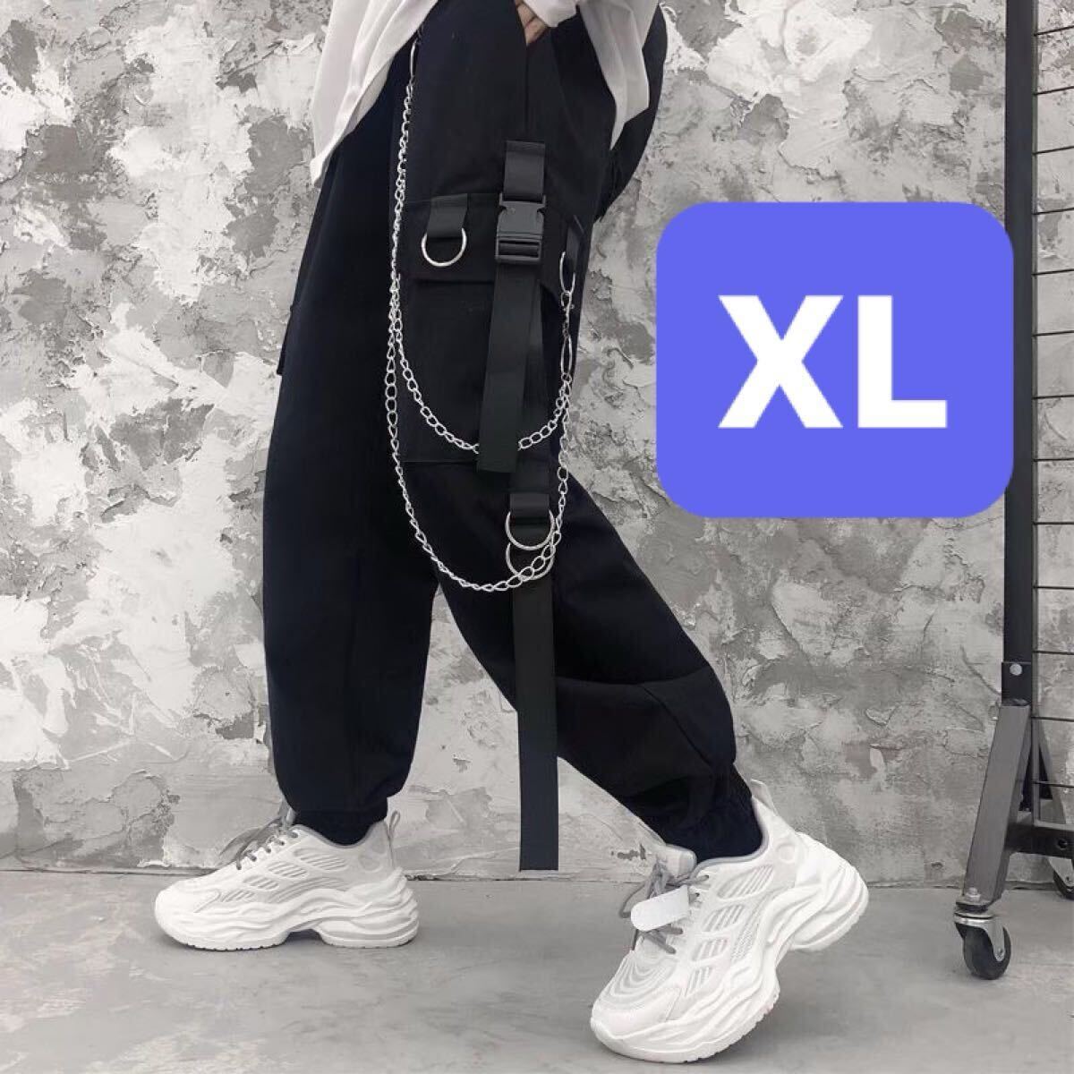 > ジョガーパンツ テーパードパンツ チェーン カーゴパンツ トレンド ストリート ユニセックス メンズ レディース ブラック 黒 XL