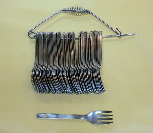 - フォーク 50本セット NITCHO W27xH150㎜ 先丸 穴アキ 18-0 ステンレス フォーク通し付 カトラリー 学校 給食 業務用 中古 74975 ★