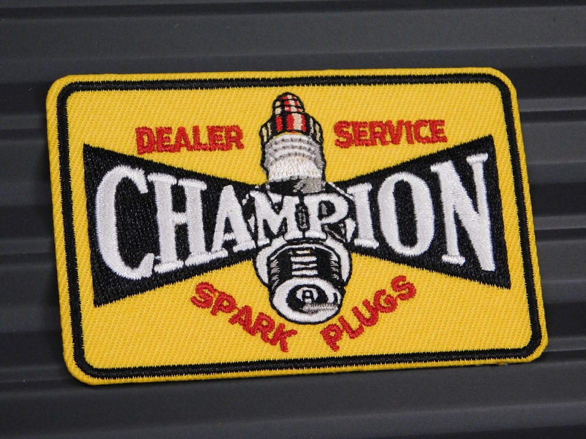 - ◆送料\110◆【CHAMPION・チャンピオンプラグ】※《アイロン刺繍ワッペン・プラグ》 アメリカン雑貨 刺繍ワッペン アイロンワッペン