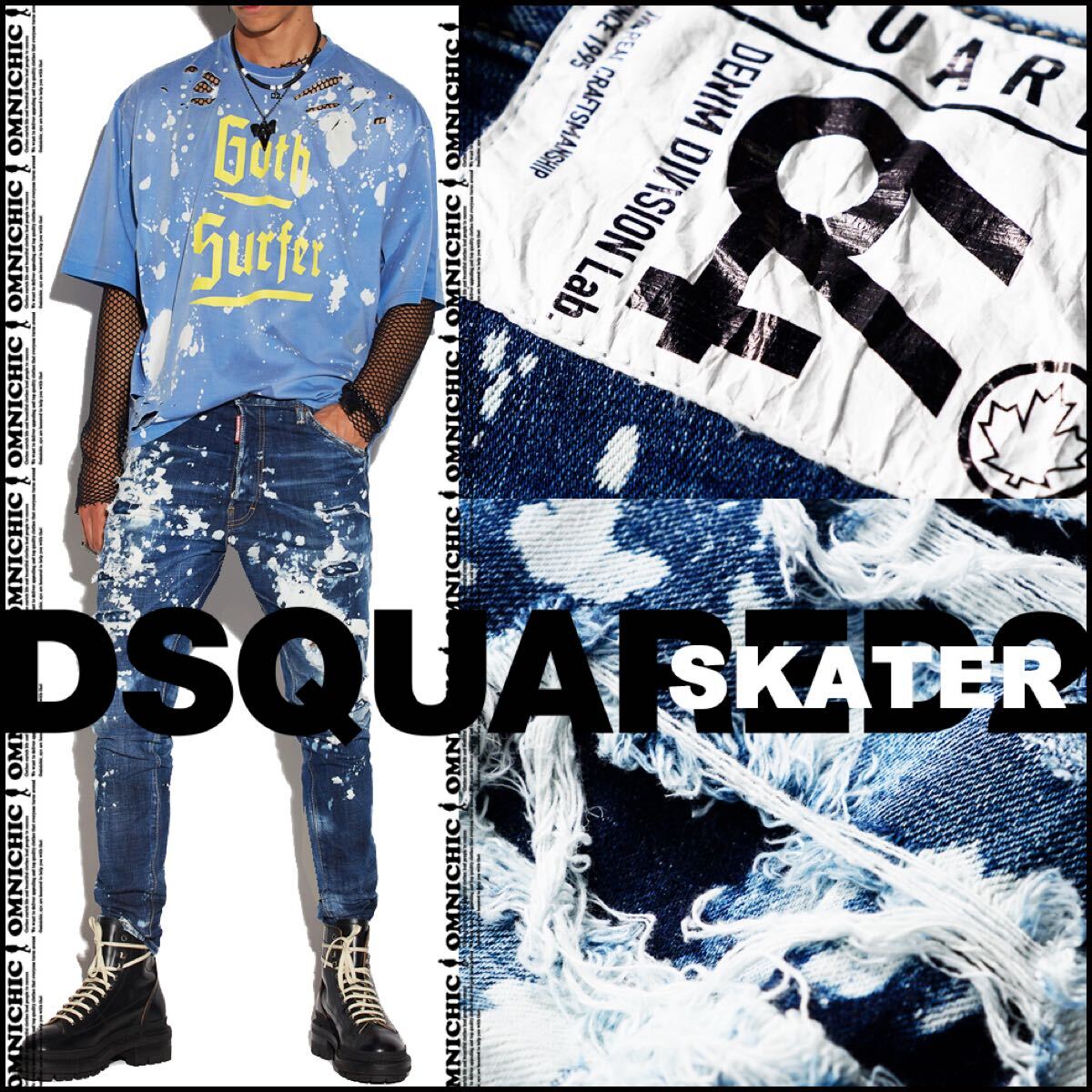 - 豪華エイジングSKATER■新品113,300円【DSQUARED2】ディースクエアードクラッシュリペアスケーターストレッチデニム52/94~96cm/S74LB1247