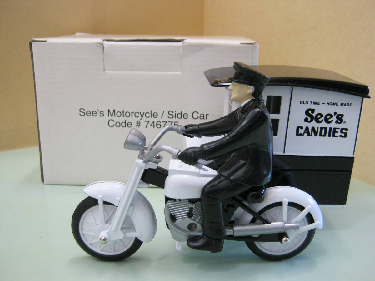 - 【See’s CANDIES See’s Motorcycle/Side Car(シーズ キャンディ サイドカー付きバイク・販売車)ダイキャスト製 配達員人形付 箱付】