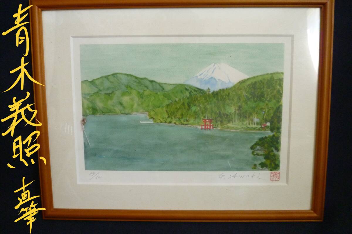 > 青木義照『芦ノ湖からの富士』(落款・本人直筆サイン)なんでも鑑定団 真作50万鑑定ミストグラフティ/リトグラフ美術品絵画額装自然風景画